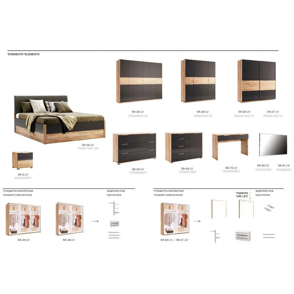 За дополнительную плату двуспальная кровать 'Рамона' может комплектоваться ящиком для белья. .Цена указана без ламелей и матраца.